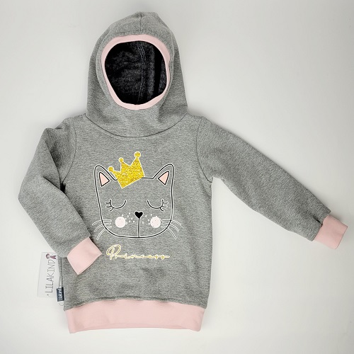 Kapuzensweater Grau Rosa Katze Gr.104/110