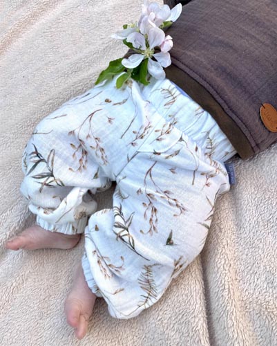 Zum Verlieben: Herrlich leicht ist diese süße Hose aus luftigem Musselin- super weich, locker und einfach zum reinschlüpfen.