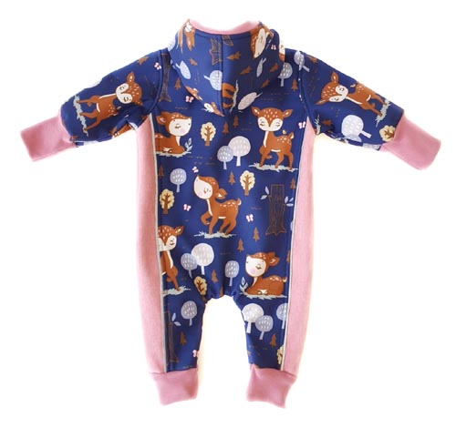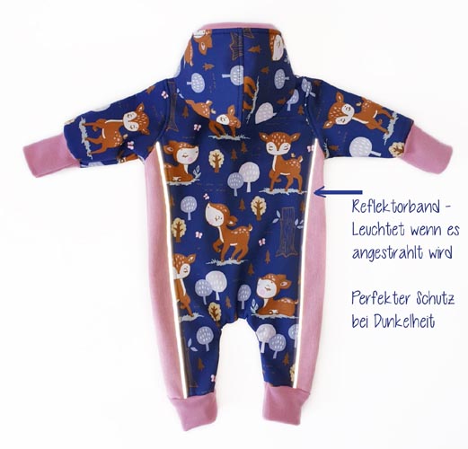 Der blau-rosa Softshell-Overall mit niedlichen Rehen in zweigeteilter Optik ist der ideale Begleiter für kühlere Jahreszeiten. Er bietet euren kleinen Entdeckern und Entdeckerinnen einen guten Schutz vor Nässe und ist gleichzeitig atmungsaktiv. Die Innenseite ist kuschelig weich angeraut und der lange Reißverschluss erlaubt ein schnelles An- und Ausziehen. Elastische Ärmel- und Beinabschlüsse runden diesen praktischen und auffälligen Einteiler ab. Die eingenähten Reflektorenbänder bieten wunderbaren Schutz bei Dunkelheit.