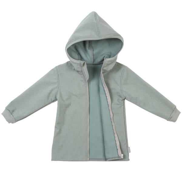 Praktische Softshelljacke auf der Innenseite mit weichem Fleece in A-Form. Der melierte unifarbene Stoff passt perfekt zu gemusterten und unifarbenen Hosen und Röcken.