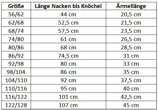 "Wir haben den Anzug in blau 92/98 bin super zufrieden. Bei kaltem Wetter haben wir Schurwoll Pulli und Hose +Body drunter. Optimal. Bei milden Temperaturen hatten wir Body und Strumpfhose."