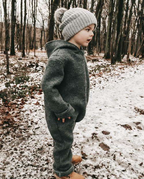 So bleibt euer Kind immer schön warm, selbst bei Minustemperaturen. Der praktische Overall vom Berliner Label Lilakind ist aus natürlichem graumeliertem Walkloden hergestellt. Die gefilzte Schafswolle hat viele positive Eigenschaften. Sie ist atmungsaktiv, wasserabweisend und wärmend. Außerdem nimmt Wolle sehr viel Feuchtigkeit auf, ohne dass der Stoff sich danach nass anfühlt. Zudem ist das natürliche Material sehr hautfreundlich.