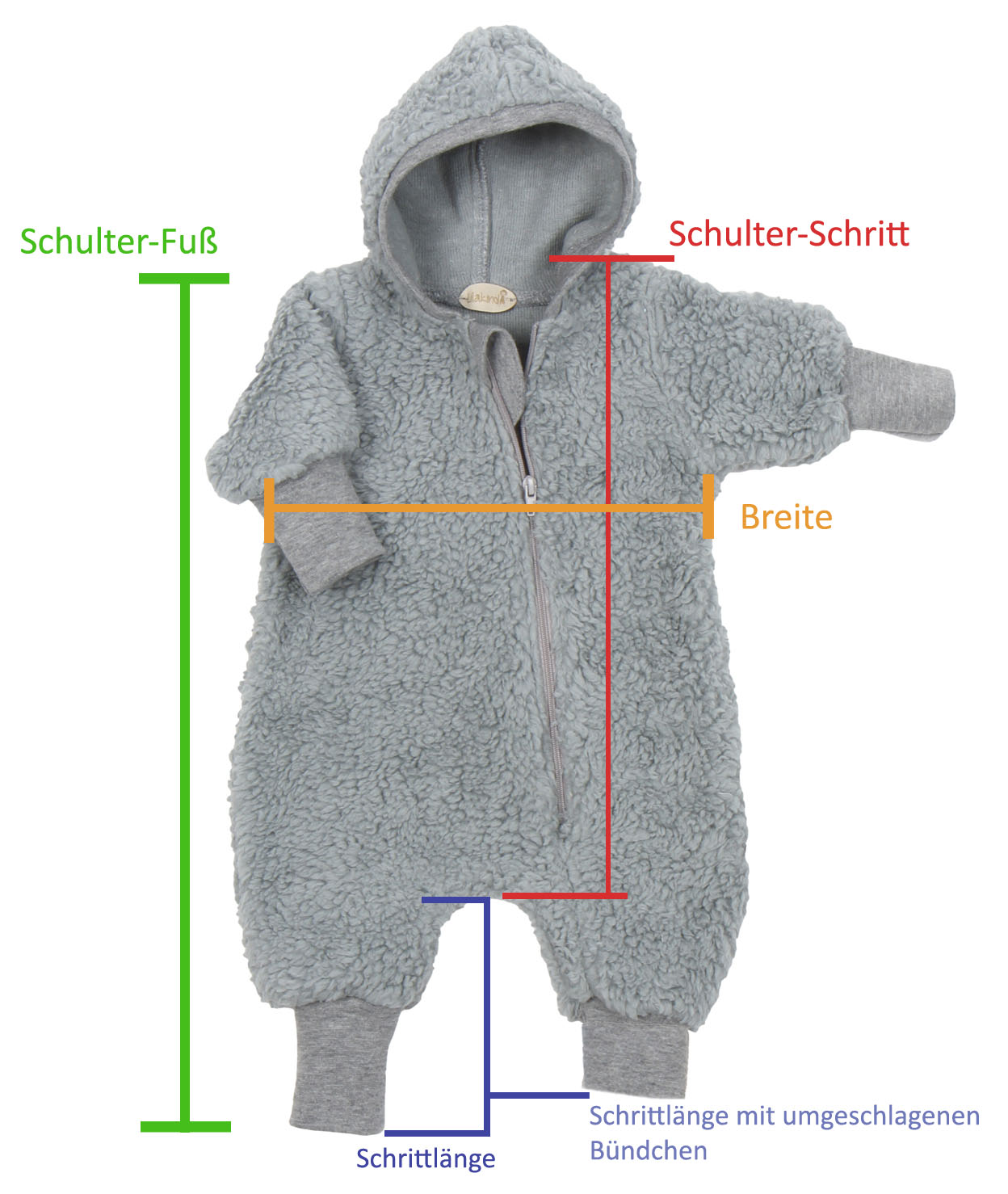 "Wir haben den Anzug in blau 92/98 bin super zufrieden. Bei kaltem Wetter haben wir Schurwoll Pulli und Hose +Body drunter. Optimal. Bei milden Temperaturen hatten wir Body und Strumpfhose."
