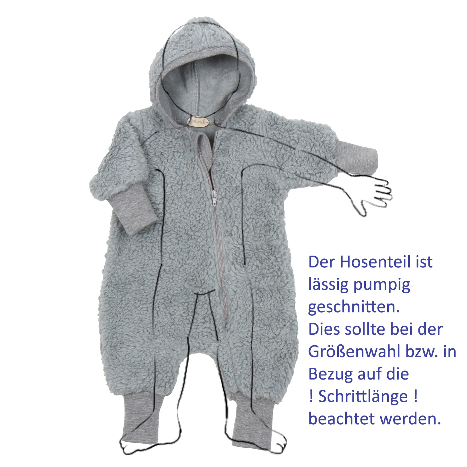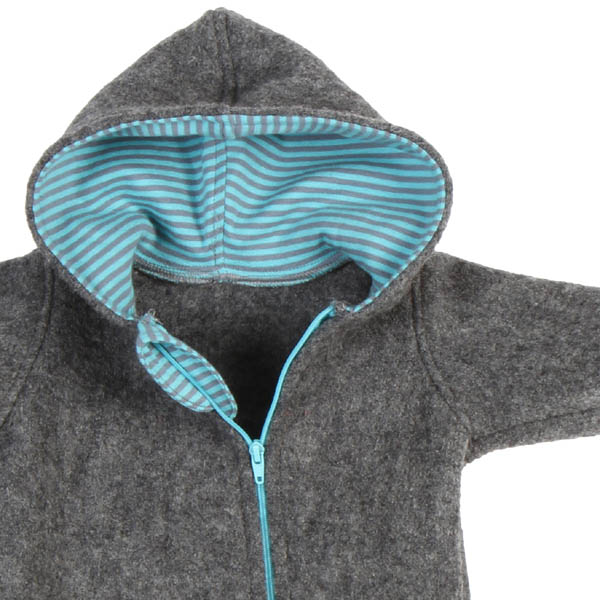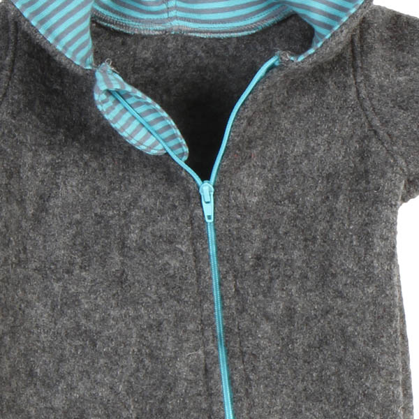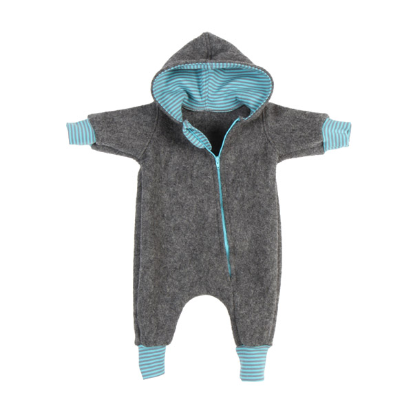 So bleibt euer Kind immer schön warm, selbst bei Minustemperaturen. Der praktische petrol unisex Overall vom Berliner Label Lilakind ist aus praktischem graumeliertem Walkloden hergestellt. Die gefilzte Schafswolle hat viele positive Eigenschaften. Sie ist atmungsaktiv, wasserabweisend und wärmend. Außerdem nimmt Wolle sehr viel Feuchtigkeit auf, ohne dass der Stoff sich danach nass anfühlt. Zudem ist das natürliche Material sehr hautfreundlich.