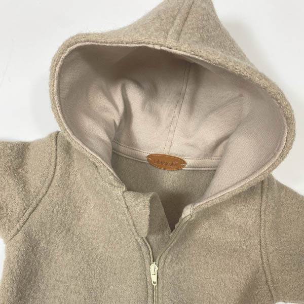 So bleibt euer Kind immer schön warm, selbst bei Minustemperaturen. Der praktische sandfarbene Overall vom Berliner Label Lilakind ist aus Walkloden hergestellt. Die gefilzte Schafswolle hat viele positive Eigenschaften. Sie ist atmungsaktiv, wasserabweisend und wärmend. Außerdem nimmt Wolle sehr viel Feuchtigkeit auf, ohne dass der Stoff sich danach nass anfühlt. Zudem ist das natürliche Material sehr hautfreundlich.